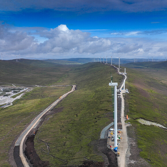 The Viking Wind Farm in Shetland using floating roads incorporate Tensar geogrid. Tensar Geogrid's greatly reduced the hydrological impact on the surrounding peat and the volume of rock fill to be transported minimising environmental disruption .